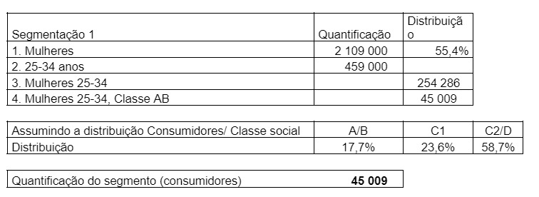 Nota: 3. Apliquei a % de distribuição SEXO ao número de consumidores faixa etária 25-34